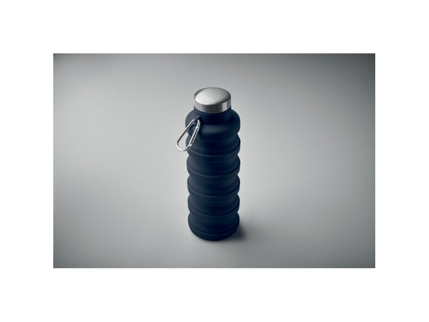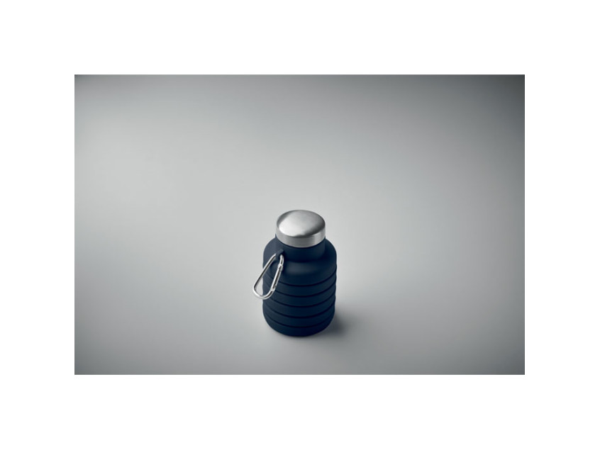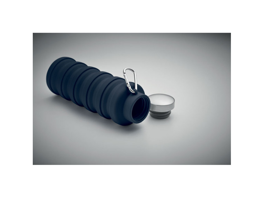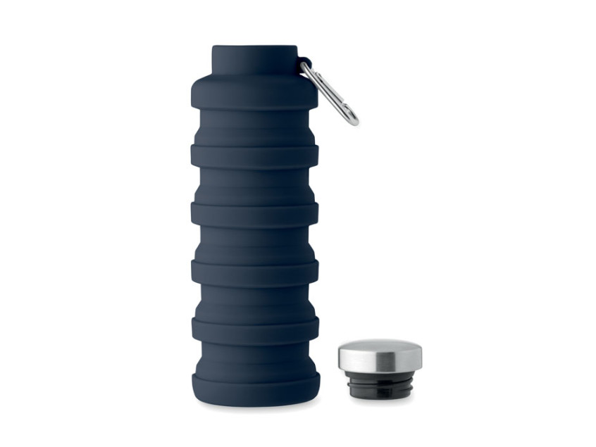 Складная силиконовая бутылка с крышкой из нержавеющей стали и алюминиевым карабином. Карабин не предназначен для альпинизма (непрофессиональное использование). Объем: 500 мл.