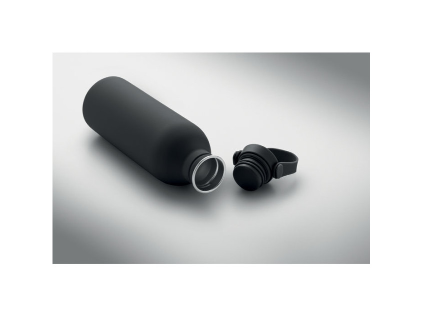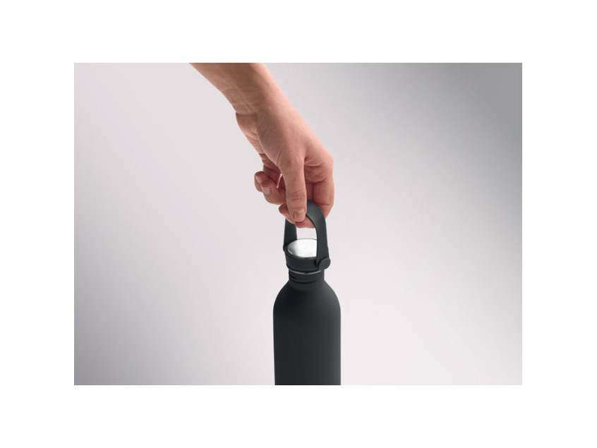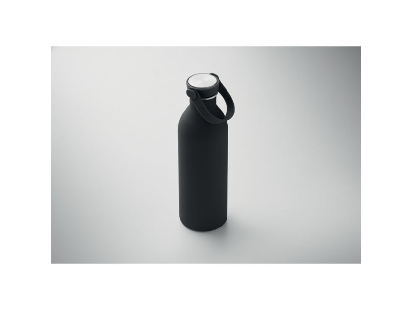 Одностенная бутылка из 90% переработанной нержавеющей стали и 10% нержавеющей стали с резиновым покрытием. Крышка из полипропилена и нержавеющей стали с силиконовой ручкой. Объем: 500 мл.