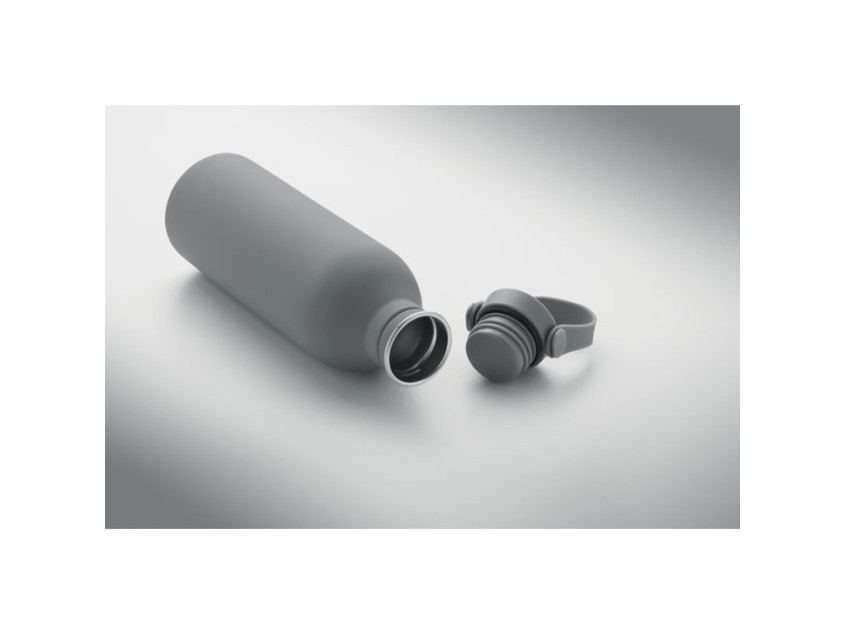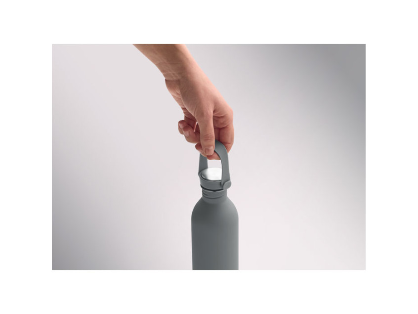 Одностенная бутылка из 90% переработанной нержавеющей стали и 10% нержавеющей стали с резиновым покрытием. Крышка из полипропилена и нержавеющей стали с силиконовой ручкой. Объем: 500 мл.