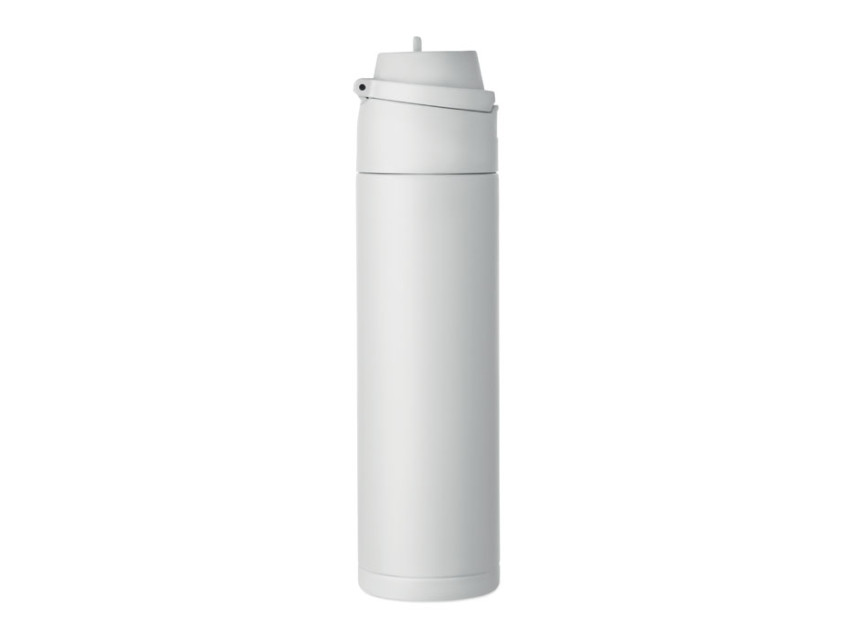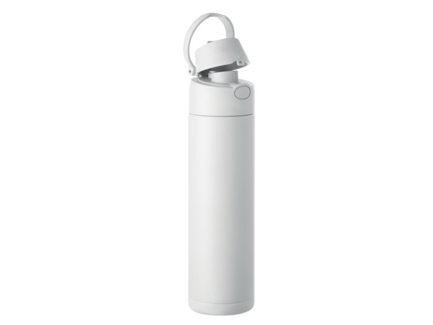 Бутылка с двойными стенками и изоляцией из 90% переработанной нержавеющей стали и 10% нержавеющей стали. Имеет трубочку 2 в 1, крышку из полипропилена и ручку. Герметичная. Объём: 500 мл.