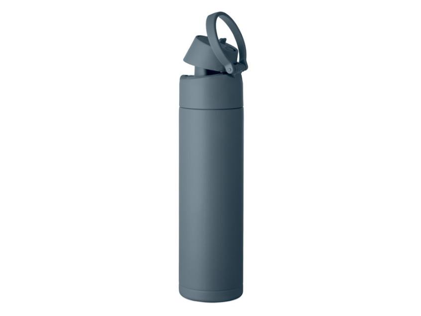 Бутылка с двойными стенками и изоляцией из 90% переработанной нержавеющей стали и 10% нержавеющей стали. Имеет трубочку 2 в 1, крышку из полипропилена и ручку. Герметичная. Объём: 500 мл.