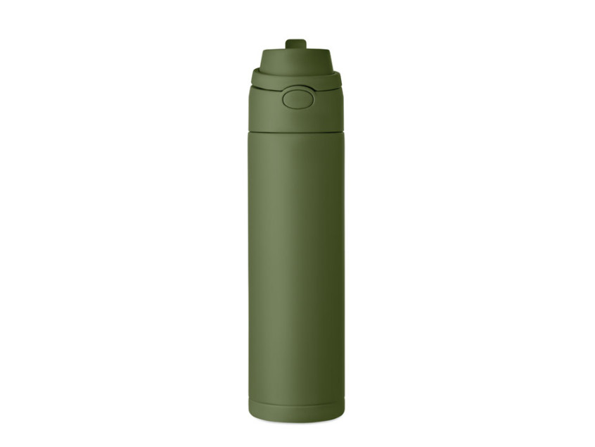 Бутылка с двойными стенками и изоляцией из 90% переработанной нержавеющей стали и 10% нержавеющей стали. Имеет трубочку 2 в 1, крышку из полипропилена и ручку. Герметичная. Объём: 500 мл.