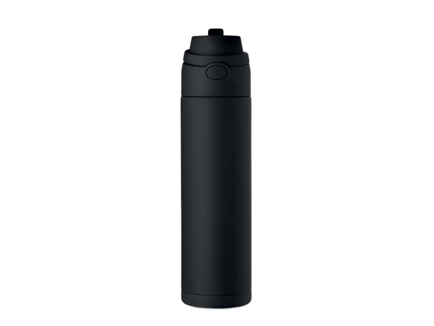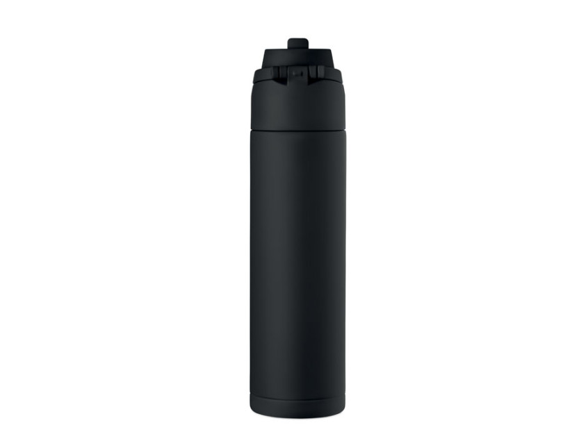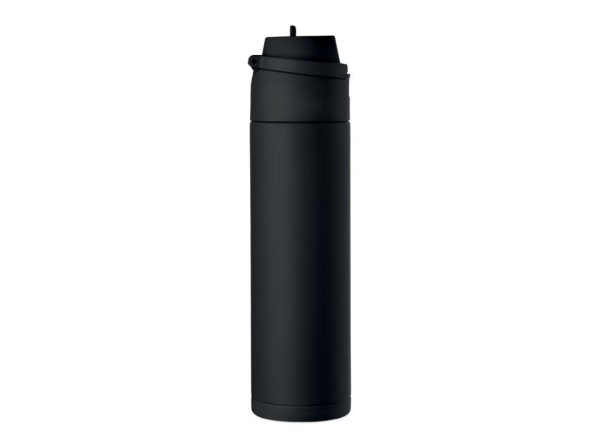 Одностенная бутылка из переработанной нержавеющей стали 90% и 10% нержавеющей стали с трубочкой 2 в 1, крышкой из полипропилена и ручкой. Герметичная. Объём: 650 мл.