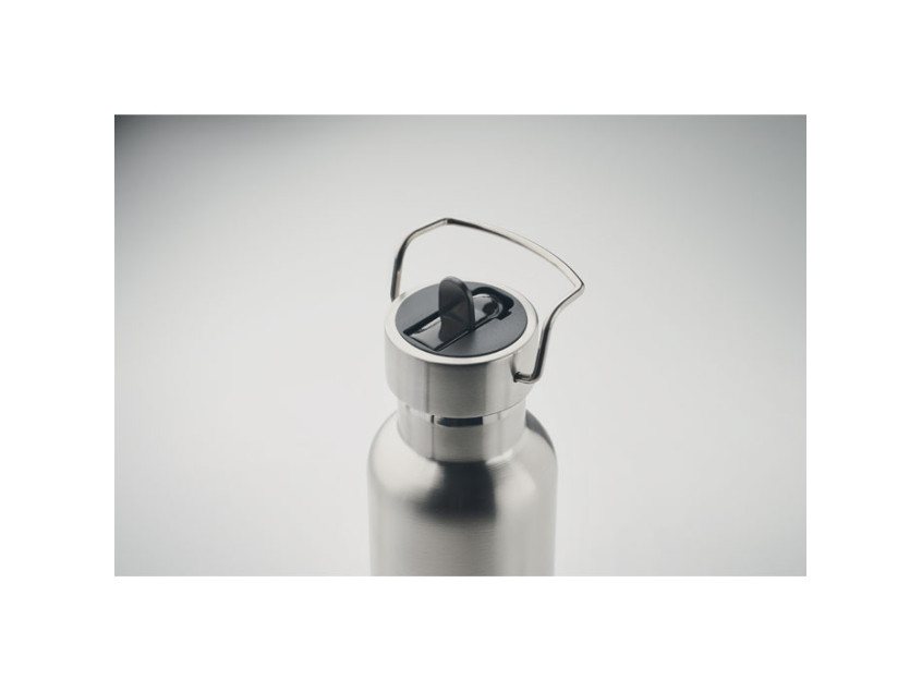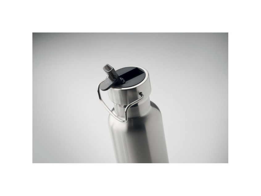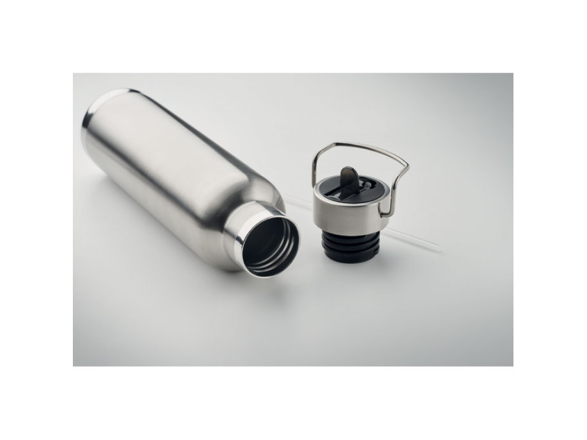 Бутылка выполнена из переработанной нержавеющей стали (90%) с добавлением обычной нержавеющей стали (10%). Это делает ее не только прочной и долговечной, но и экологически ответственным выбором. Тускло-серебряный цвет придает изделию сдержанный шик, который подчеркнет ваш стиль в любой ситуации — будь то тренировка в зале, прогулка в парке или деловая встреча.