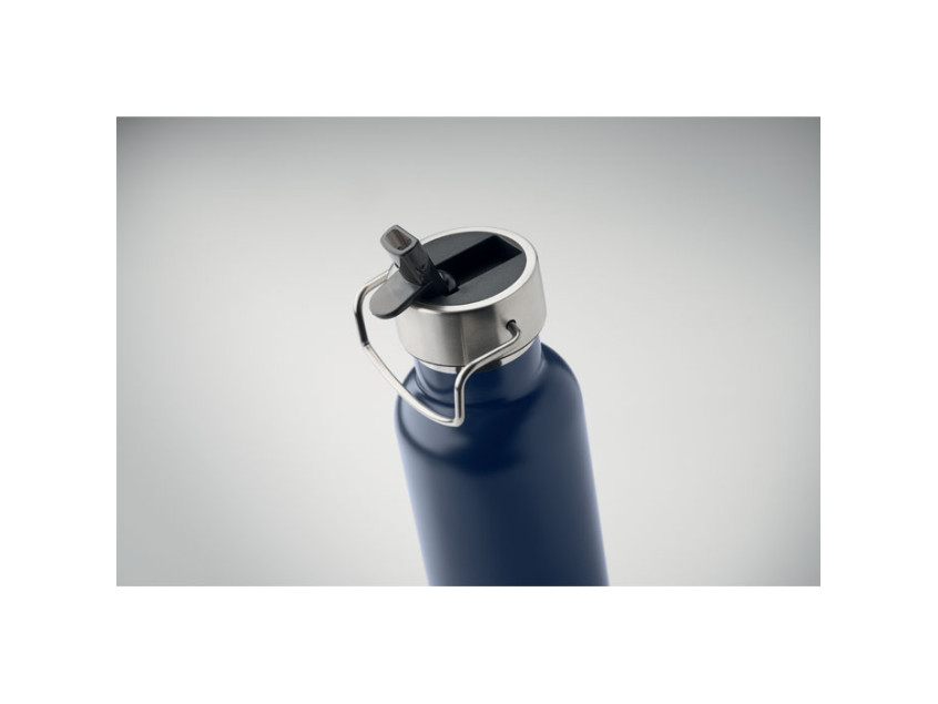 Бутылка выполнена в насыщенном цвете "французский флот" — глубокий оттенок синего, который добавляет образу изысканности и уверенности. Ее корпус изготовлен из переработанной нержавеющей стали (90%) с добавлением обычной нержавеющей стали (10%), что делает ее не только стильной, но и экологически ответственной. Двойные стенки обеспечивают надежную термоизоляцию, сохраняя напитки холодными до 24 часов, а горячими — до 12.