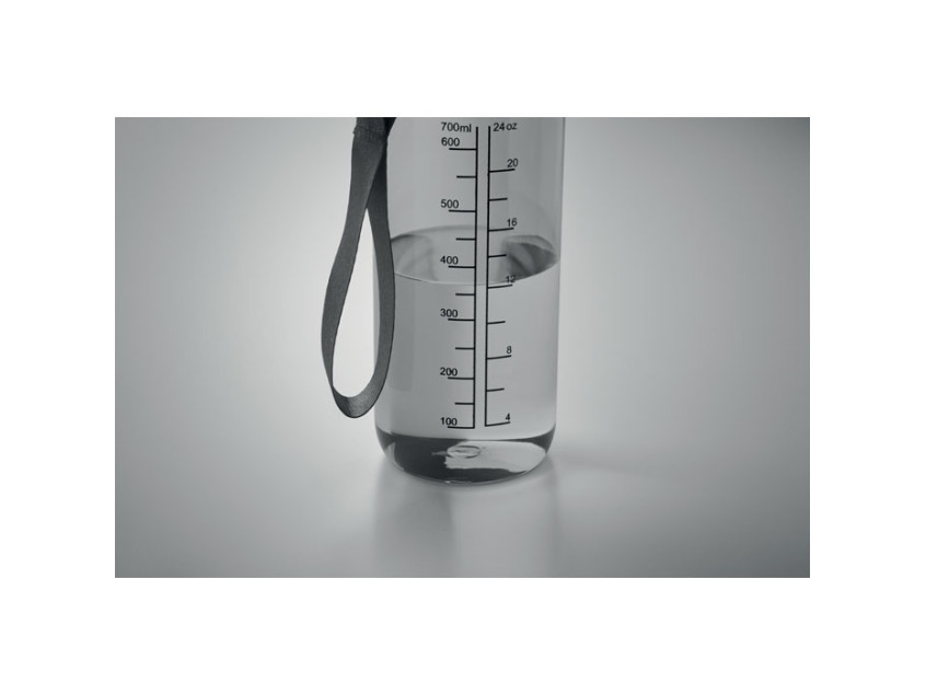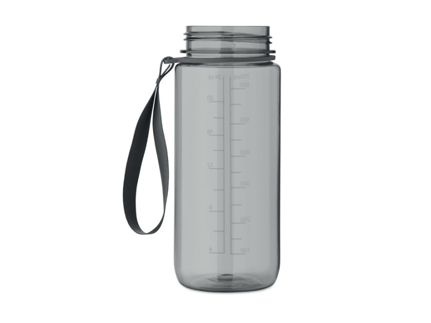 Спортивная бутылка для воды из RPET со встроенной трубочкой, откидной крышкой, открывающейся одной рукой, предохранительным замком и ремешком для переноски из RPET. Объем 700 мл. Герметичная.