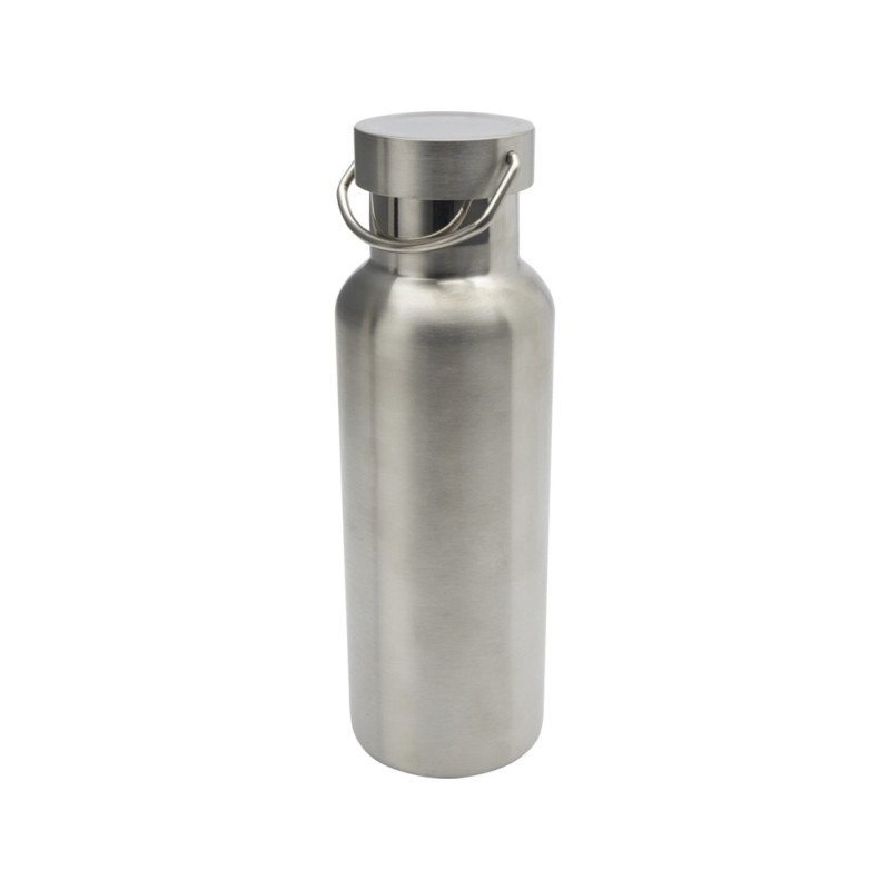 Прочная бутылка для воды из нержавеющей стали с двойными стенками, вакуумной изоляцией, сертифицированная RCS, с завинчивающейся крышкой из нержавеющей стали и прочной ручкой-петлей из нержавеющей стали. Объем: 500 мл. Герметичность. Уложена в подарочную коробку. RCS certified recycled stainless steel.