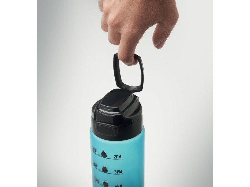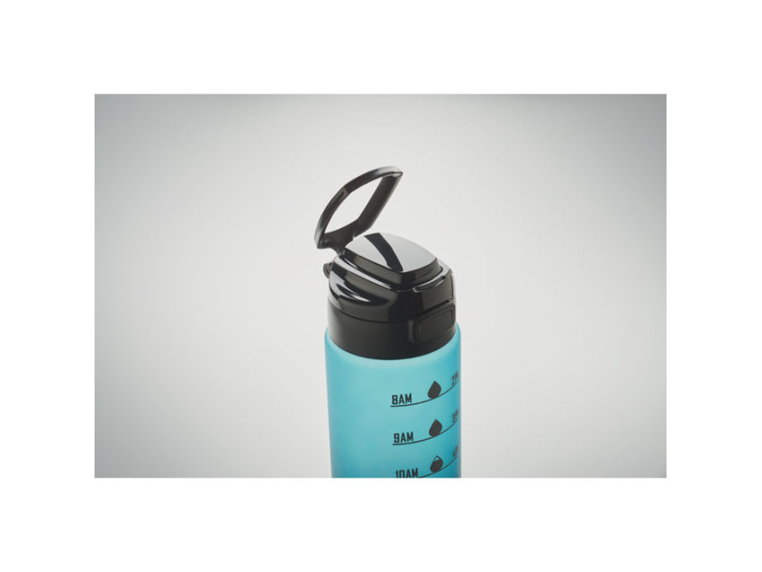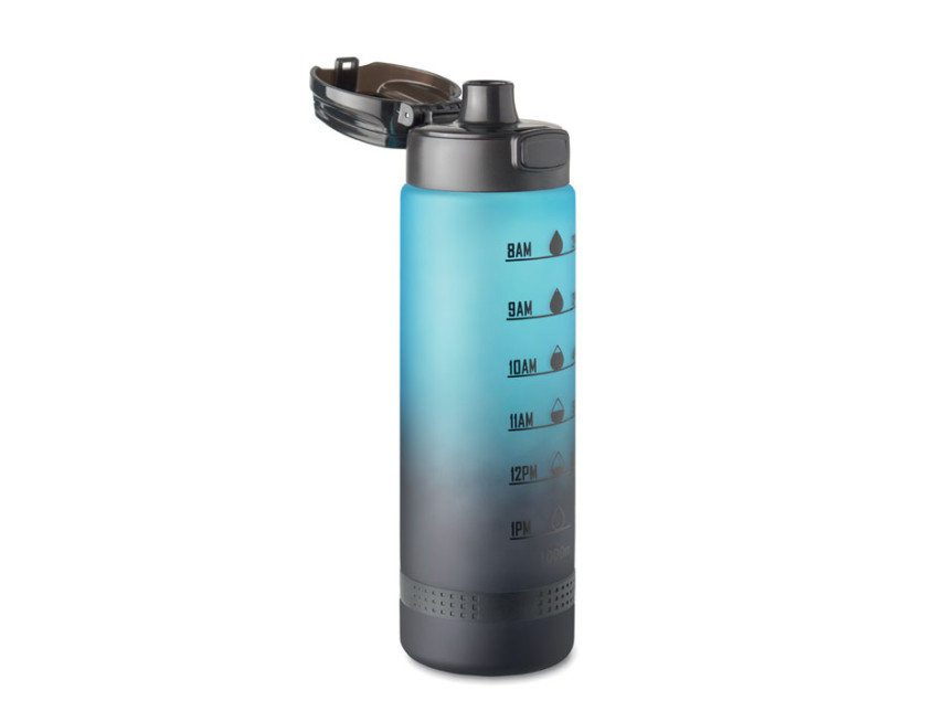 Бутылка объемом 1 литр оснащена удобной разметкой, которая помогает контролировать потребление жидкости. Это идеальное решение для тех, кто следит за своим здоровьем и хочет поддерживать водный баланс в течение дня. Откидная крышка с замком безопасности обеспечивает надежную защиту от протеканий, а ремешок для переноски делает бутылку максимально удобной в использовании.