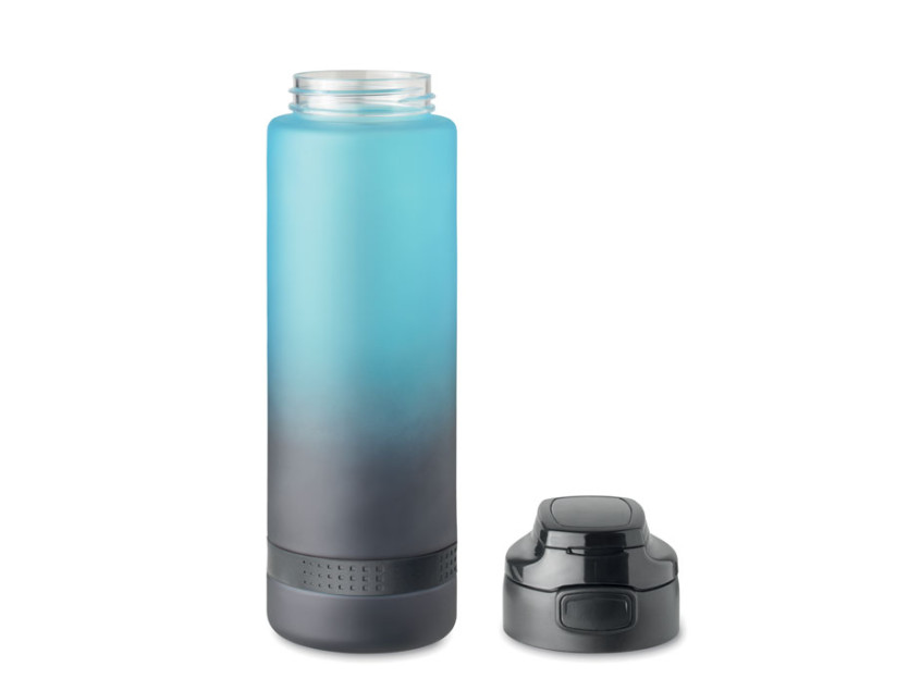 Созданная из переработанного пластика (RPET), эта бутылка — ваш вклад в сохранение природы. Каждый глоток воды из нее напоминает о том, что вы делаете мир лучше. Бирюзовый цвет, словно отражение чистой воды в океане, добавляет свежести и энергии вашему образу.