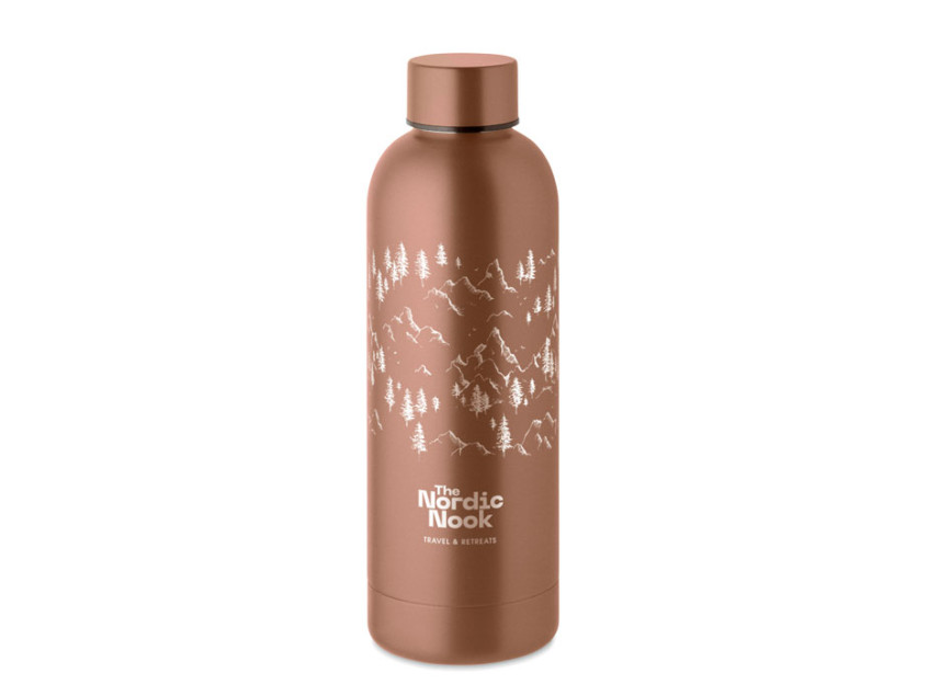 Почему именно эта бутылка? Во-первых, ее медный цвет — это тренд, который никогда не выходит из моды. Он добавляет изысканности и легко сочетается с любым стилем одежды. Во-вторых, технология цифровой печати 360° позволяет создать уникальный дизайн, который будет выделяться среди других. Представьте, как ваш логотип или любимый узор обретает жизнь на поверхности бутылки, превращая ее в настоящее произведение искусства. А если вы предпочитаете минимализм, лазерная гравировка добавит нотку сдержанной элегантности.