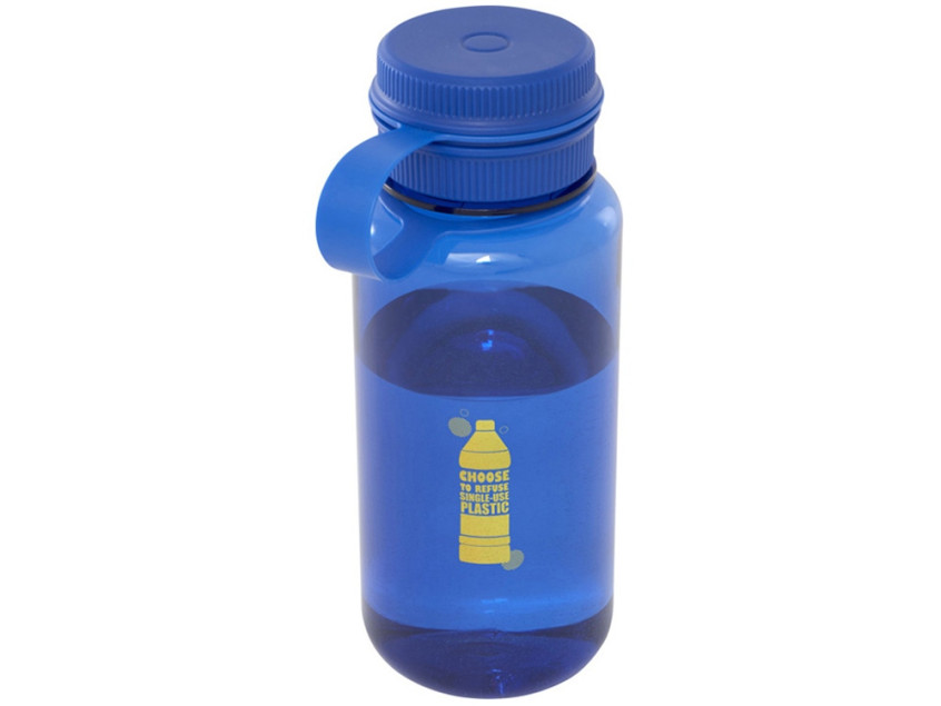 Одностенная спортивная бутылка, изготовленная из переработанного ПЭТ-пластика, сертифицированного RCS, с завинчивающимся верхом, герметичной крышкой и удобной ручкой для переноски, встроенной в крышку. Конструкция с двумя отверстиями для легкой очистки и наполнения. В соответствии с одобренным EFSA (Европейским агентством по безопасности пищевых продуктов) процессом переработки ПЭТ. Объем: 900 мл. Переработанный PET пластик.
