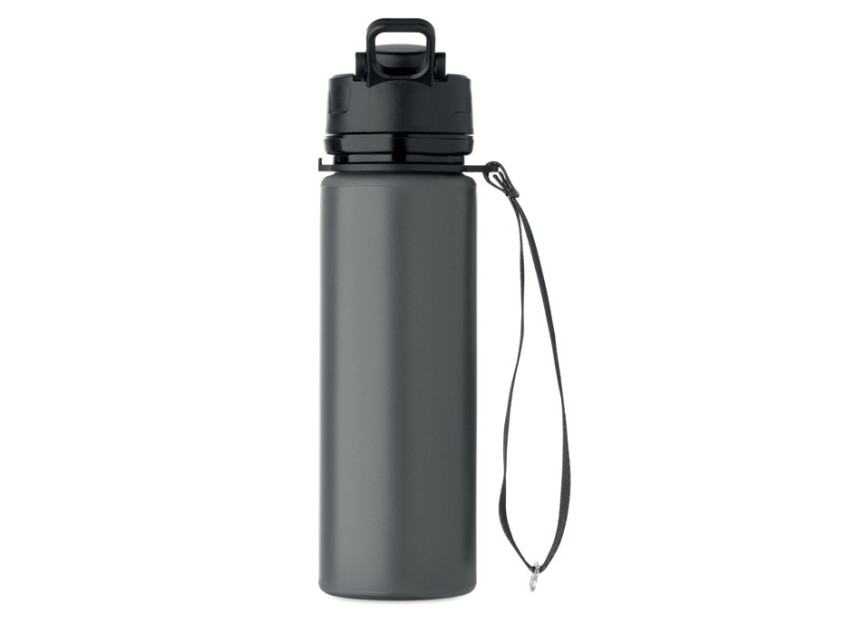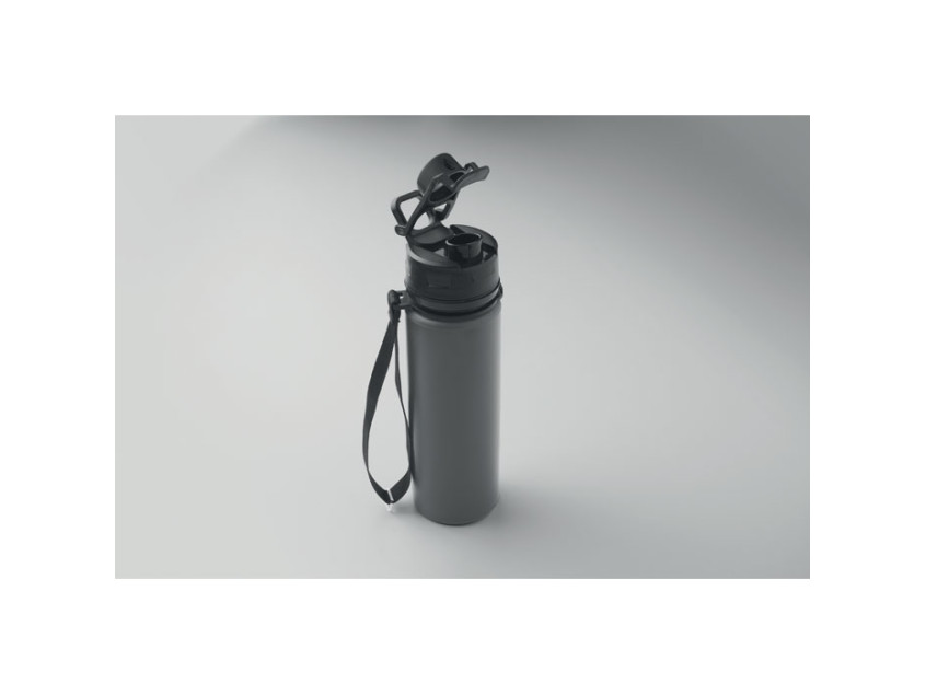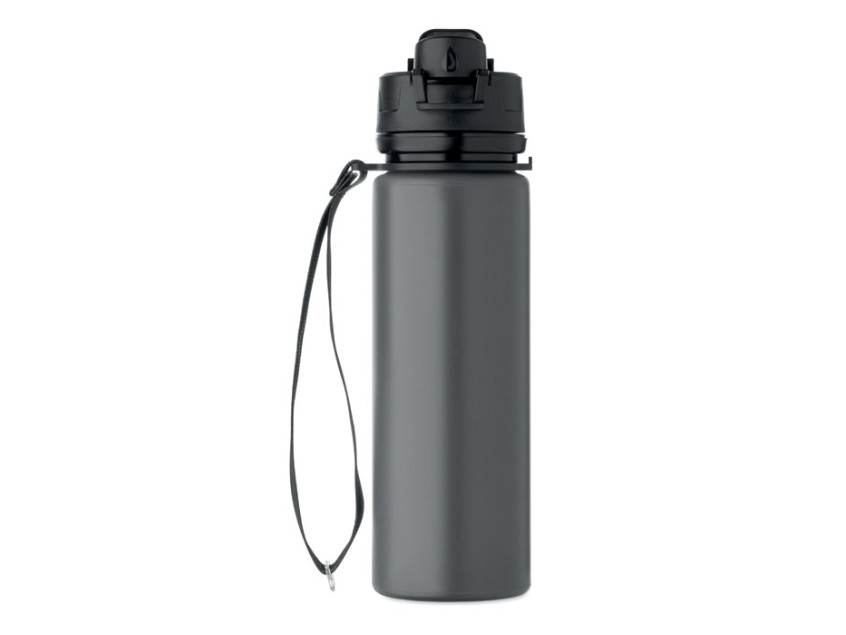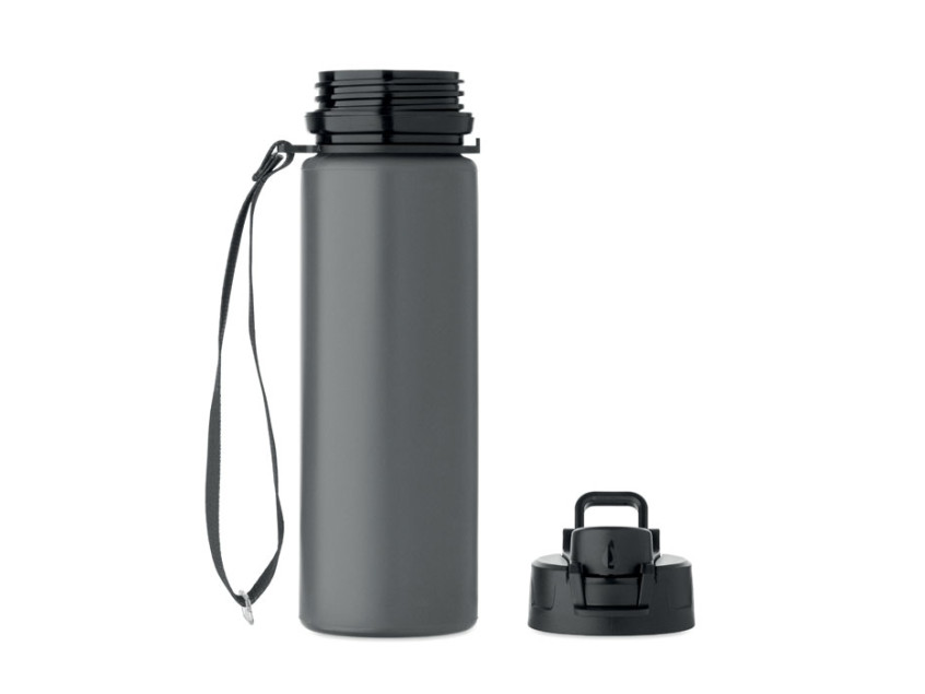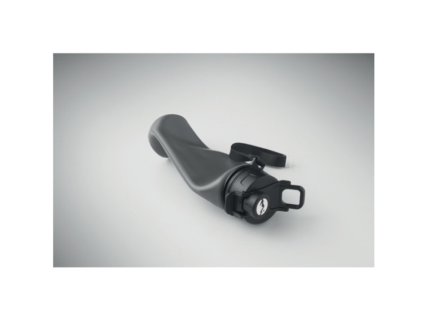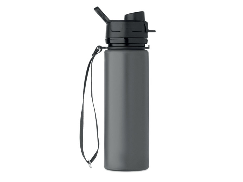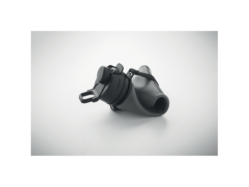 Складная силиконовая спортивная бутылка с крышкой из полипропилена (PP), ручкой, полиэстеровым ремешком и прозрачной застежкой для фиксации в сложенном виде. Герметичная. Объём: 500 мл.
