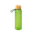 Полупрозрачная бутылка из переработанного стекла. Бамбуковая крышка с держателем. Объём: 500 мл. Поставляется в индивидуальной коробке.
