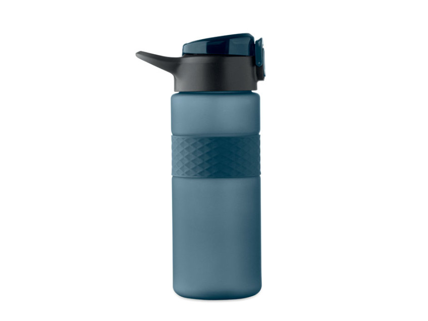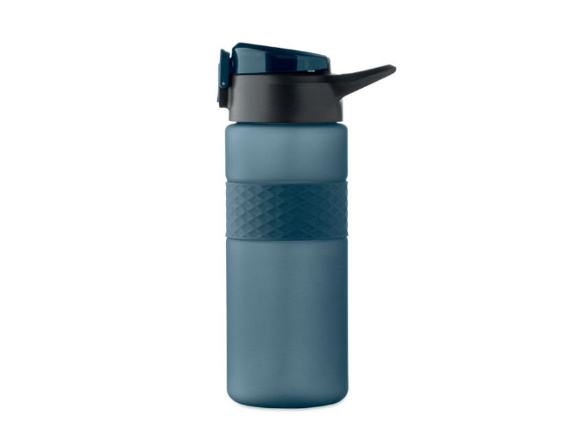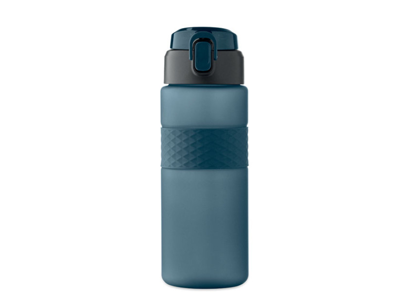 Drinking bottle made from RPET with silicone grip, PP flip-top lid and safety lock. Including integrated straw. Leak-free. Capacity: 700 ml.