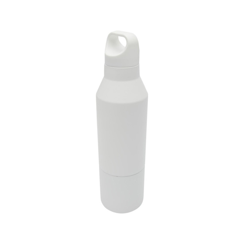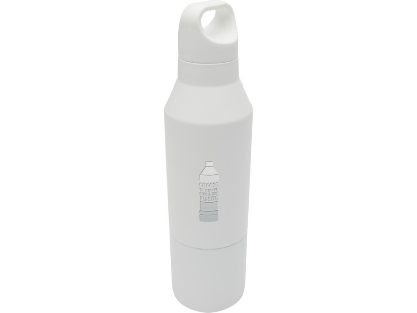 Бутылка из нержавеющей стали с двойными стенками и медной изоляцией, сертифицированная согласно RCS, со съемной крышкой. Эта многофункциональная бутылка помещается в боковой карман рюкзака и имеет удобную ручку для переноски, встроенную в крышку. Прочное порошковое покрытие снаружи. Напитки останутся горячими в течение 12 часов и холодными в течение 24 часов. Поставляется в подарочной коробке из переработанного картона. Объем бутылки: 600 мл. Объем кружки: 300 мл. Recycled stainless steel. упаковка FSC Mix Credit P5.1 CU-COC-877277.