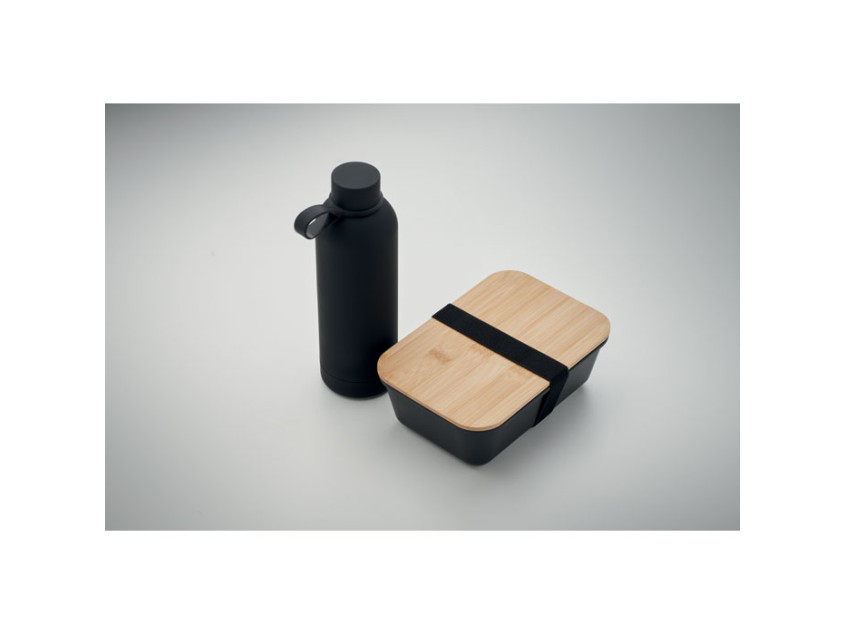 Черный цвет набора придает ему универсальность и элегантность. Такой аксессуар подойдет как для офиса, так и для прогулок на природе. Бутылка объемом 500 мл и ланчбокс на 900 мл — идеальные размеры для тех, кто ценит компактность и функциональность. Герметичные крышки гарантируют, что ваш обед или напиток останутся в безопасности, даже если вы положите набор в сумку.