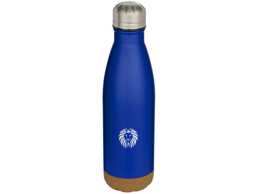 Бутылка для воды из нержавеющей стали с вакуумной изоляцией и пробковыми деталями в нижней части. Двойная изоляция стенок сохраняет напитки горячими или холодными в течение нескольких часов. Поставляется в подарочной коробке из переработанного картона. Объем: 500 мл. 90% нержавеющая сталь, 10% Пробка. упаковка FSC Mix Credit P5.1 CU-COC-877277.