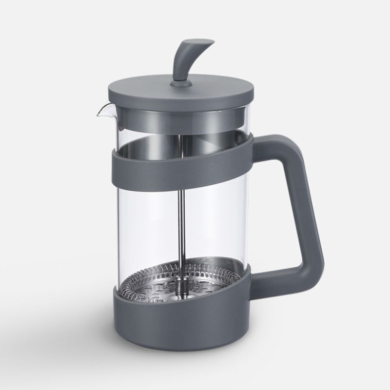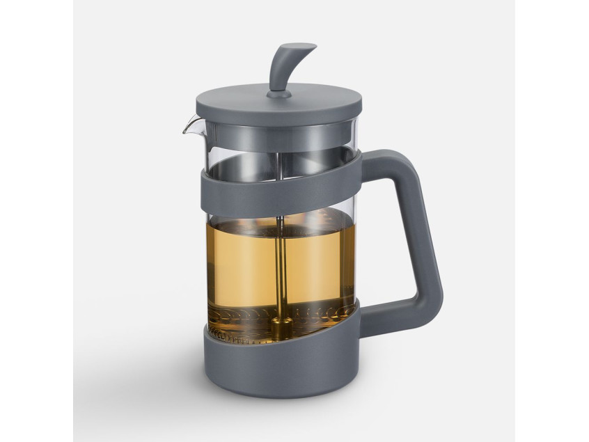 Колба из боросиликатного стекла, способного выдерживать температуры до +110°С. Пластиковые детали изготовлены из прочного и нетоксичного материала, а пресс-фильтр сделан из нержавеющей стали. Носик с системой антикапля предотвращает проливания, позволяя аккуратно наливать горячий напиток. Прозрачные стенки позволяют легко определить крепость заваренного напитка. Модель также оснащена ненагревающейся ручкой, что делает использование удобным и безопасным.