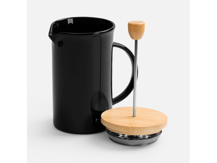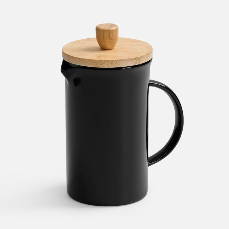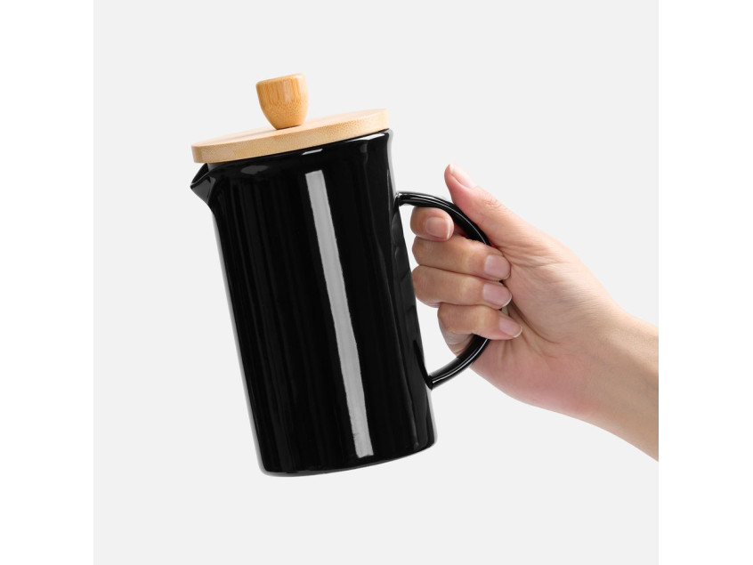 Элегантный керамический френч-пресс Mezzo в глянцевом черном исполнении — украшение для любого уголка, от уютной домашней кухни до стильного офиса.Емкость 600 мл.