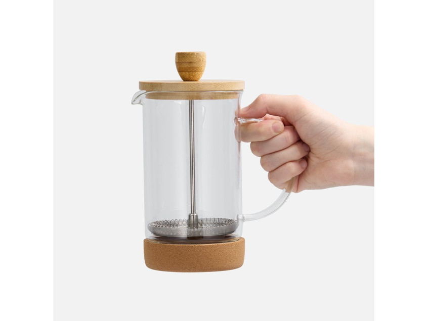 Прозрачное боросиликатное стекло позволяет легко контролировать процесс заваривания, а натуральная деревянная крышка и пробковая подставка добавляют изделию стиля и практичности, подчеркивая приверженность к экологичным мотивам. Эргономичная ручка и продуманный дизайн делают каждое утро приятным ритуалом, а название Morning Person напоминает: этот аксессуар создан для тех, кто встречает день с энергией и вдохновением.