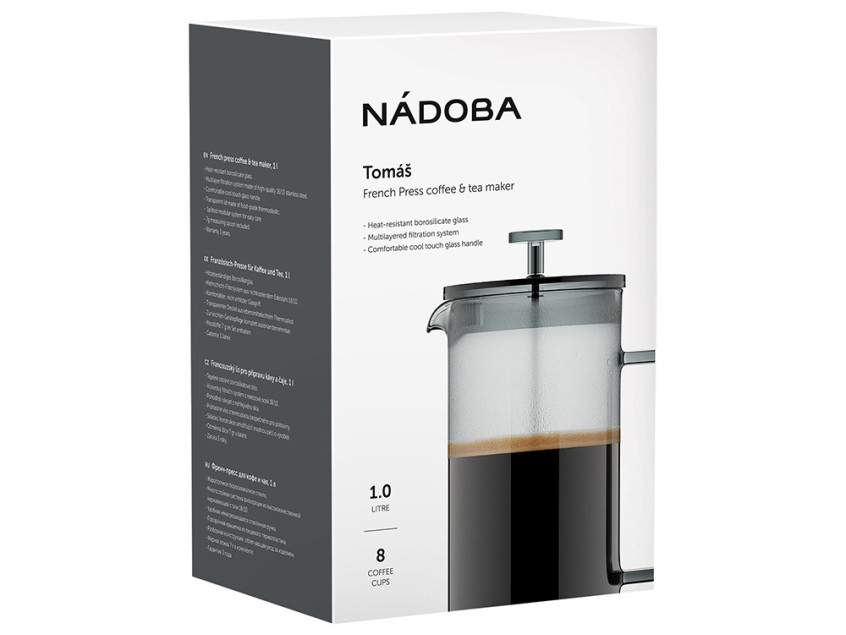 Френч-пресс NADOBA 1 л серии Tomas выполнен из жаропрочного боросиликатного стекла, обладающего повышенной стойкостью к любым внешним воздействиям. Преимуществом данном материала является способность выдерживает как высокие, так и низкие температуры. Поэтому во френч-прессе возможно заваривать не только горячие напитки, но и делать прохладительные лимонады.