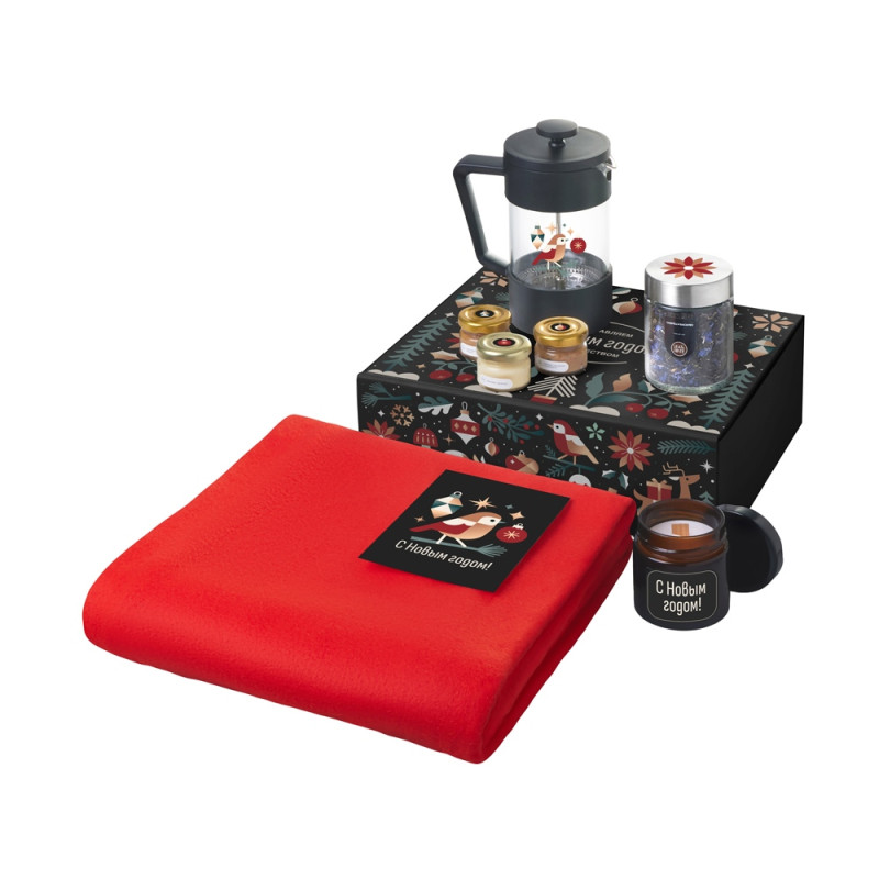 Подарочный набор Re:Moments с пледом, френчпрессом и медом