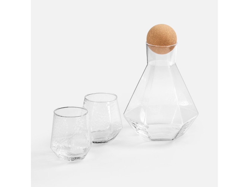 Графин из боросиликатного стекла отличается высокой термостойкостью и долговечностью, гарантируя надежность при ежедневном использовании. Стаканы, выполненные из закаленного стекла, сочетают в себе прочность и изящество, сохраняя прозрачность и устойчивость к ударам. В комплекте также предусмотрена крышка в виде шара из натуральной пробки, которая гармонично дополняет общий дизайн и обеспечивает защиту напитка от пыли и выветривания.