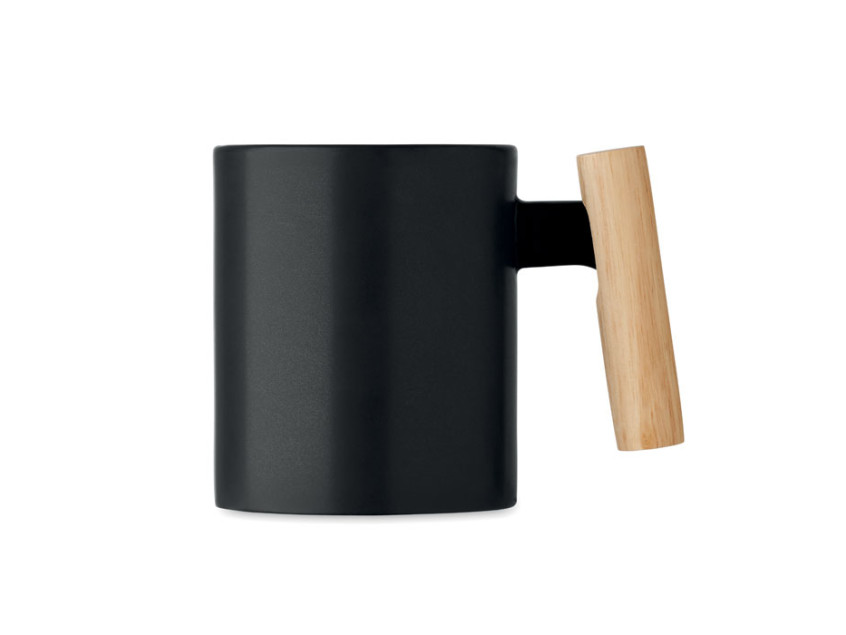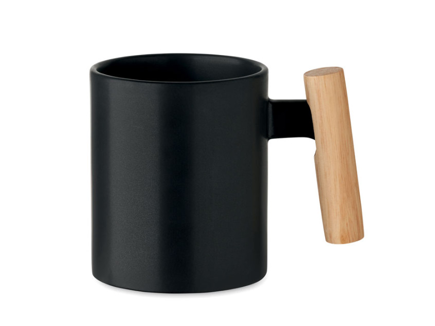 Ceramic mug with wooden handle. Capacity: 320ml. Individual packed in white carton box. Hand wash only.