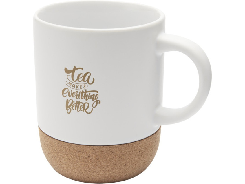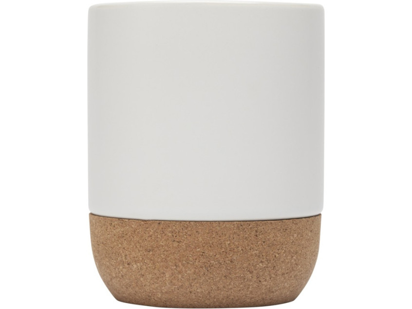 Керамическая кружка с основанием из пробкового дуба. Снаружи имеет матовое покрытие, внутри — глянцевое. Рекомендуется мыть вручную в тёплой воде с мягким моющим средством. Поставляется в подарочной коробке из переработанного картона. Объём — 300 мл. Состав: 90% керамика, 10% пробка.