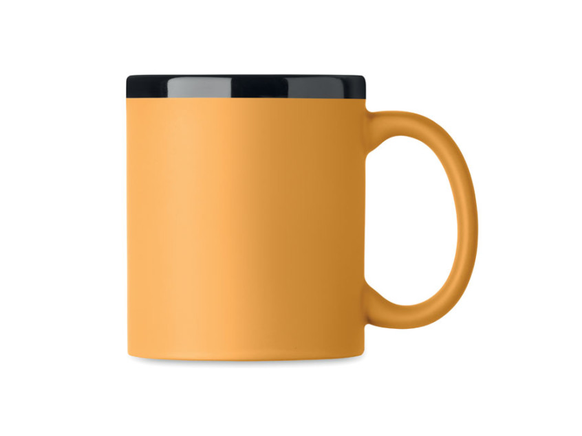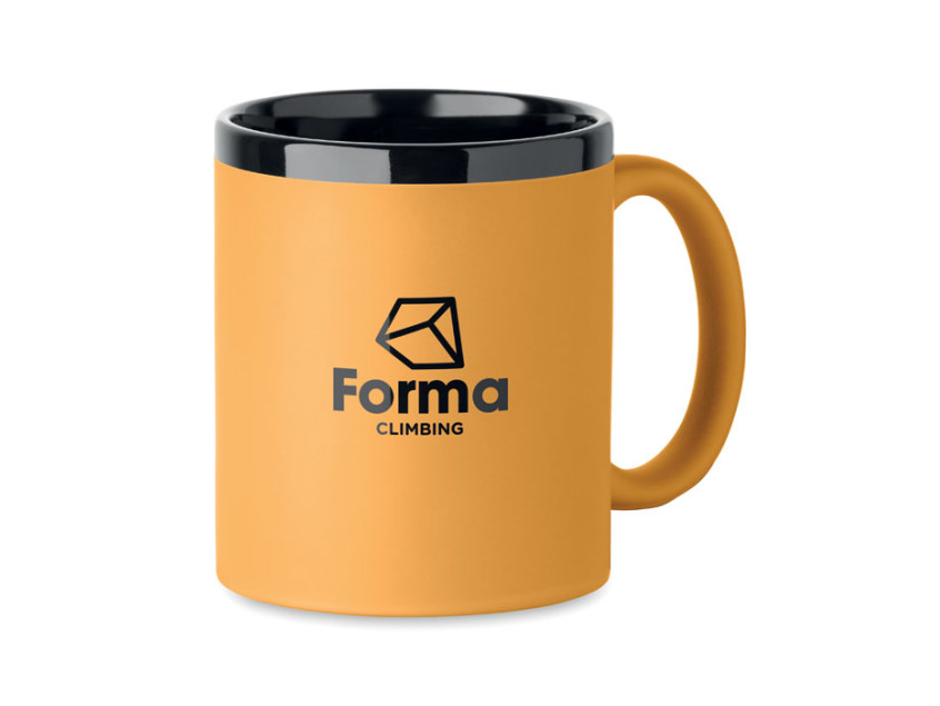 Ceramic mug with soft touch coating and black inside/rim. Suitable for engraving. Capacity: 300 ml. Individually packed in white carton box.
