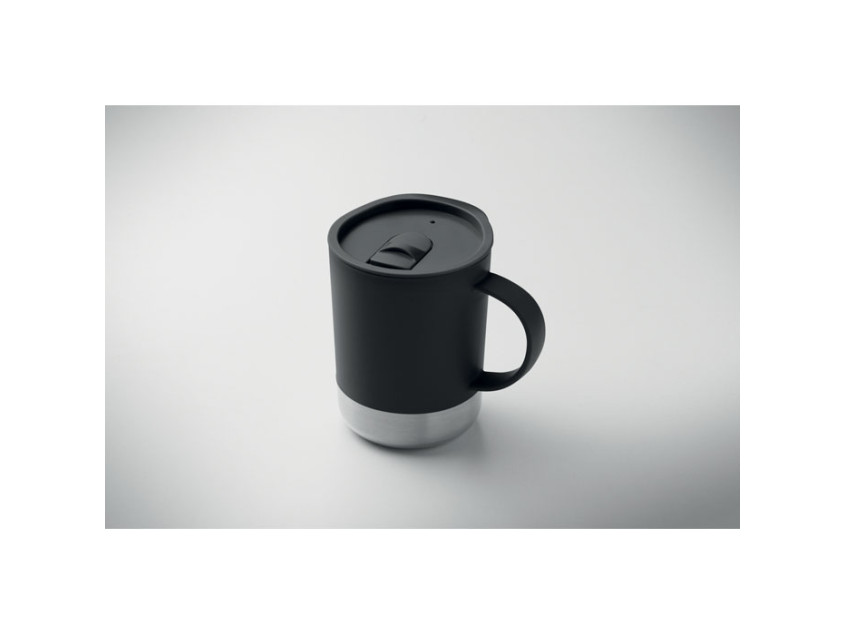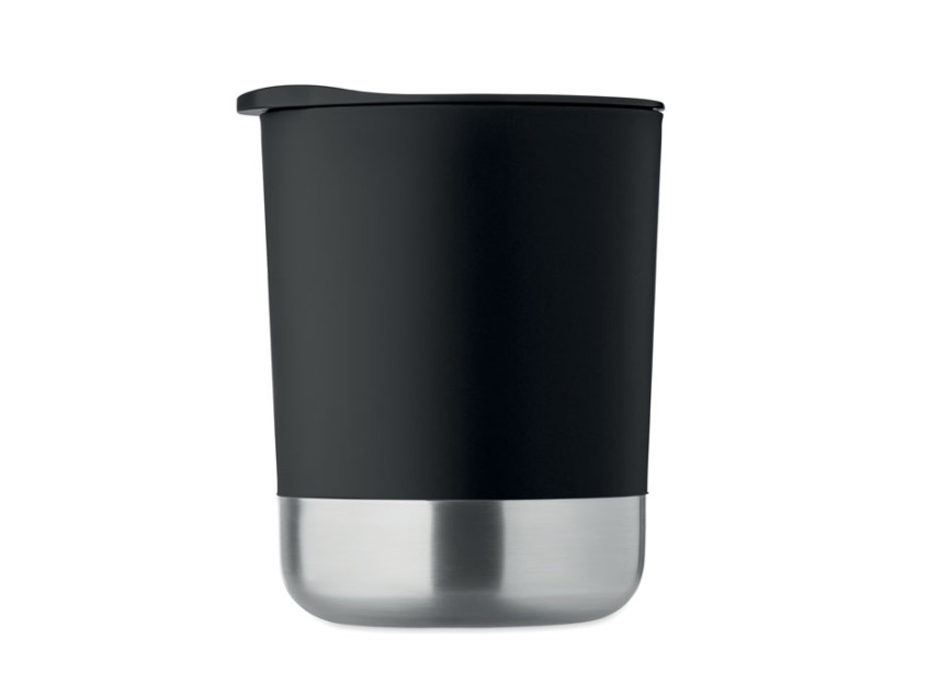 Кружка из полипропилена с основанием из 90% переработанной нержавеющей стали и 10% нержавеющей стали, с крышкой-слайдером. Объём: 300 мл.