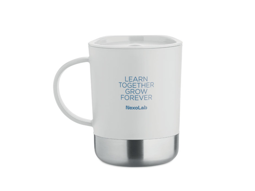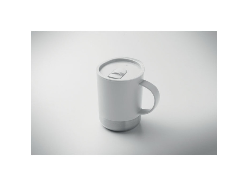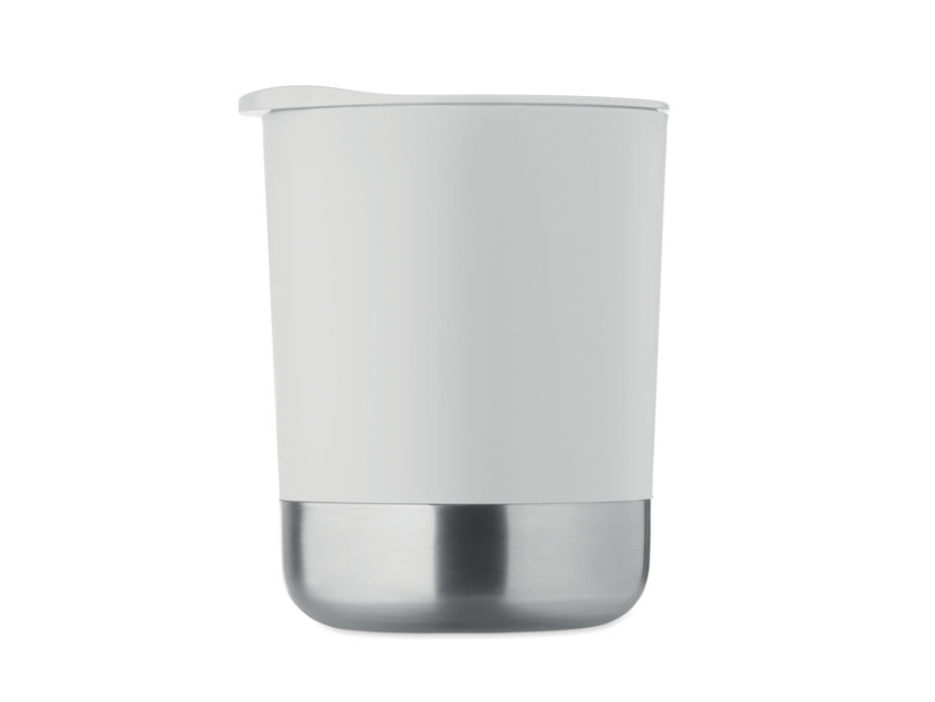 Кружка из полипропилена с основанием из 90% переработанной нержавеющей стали и 10% нержавеющей стали, с крышкой-слайдером. Объём: 300 мл.