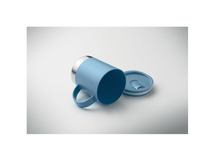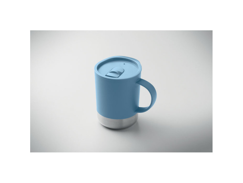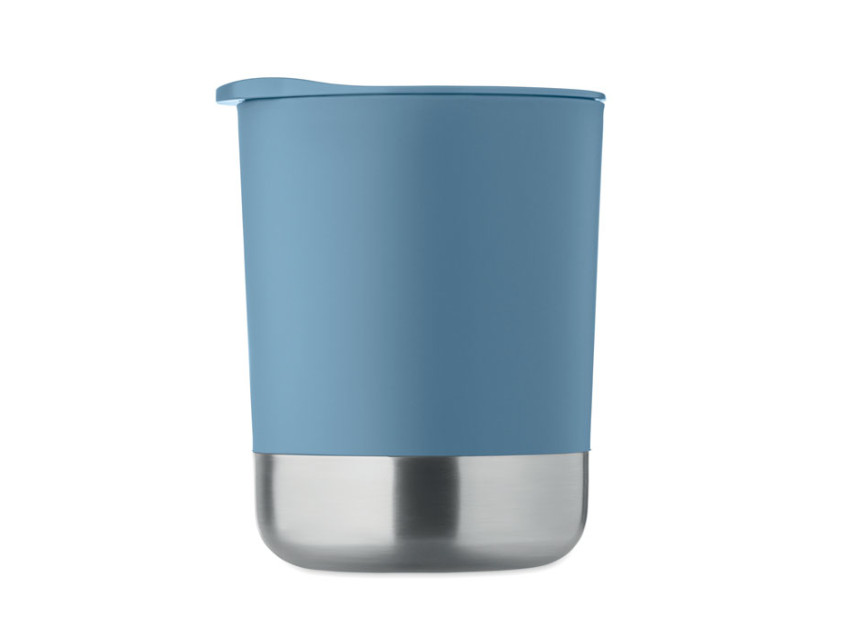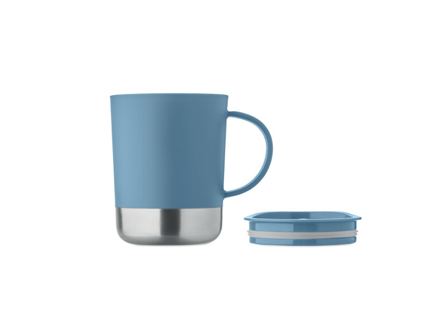 Кружка из полипропилена с основанием из 90% переработанной нержавеющей стали и 10% нержавеющей стали, с крышкой-слайдером. Объём: 300 мл.