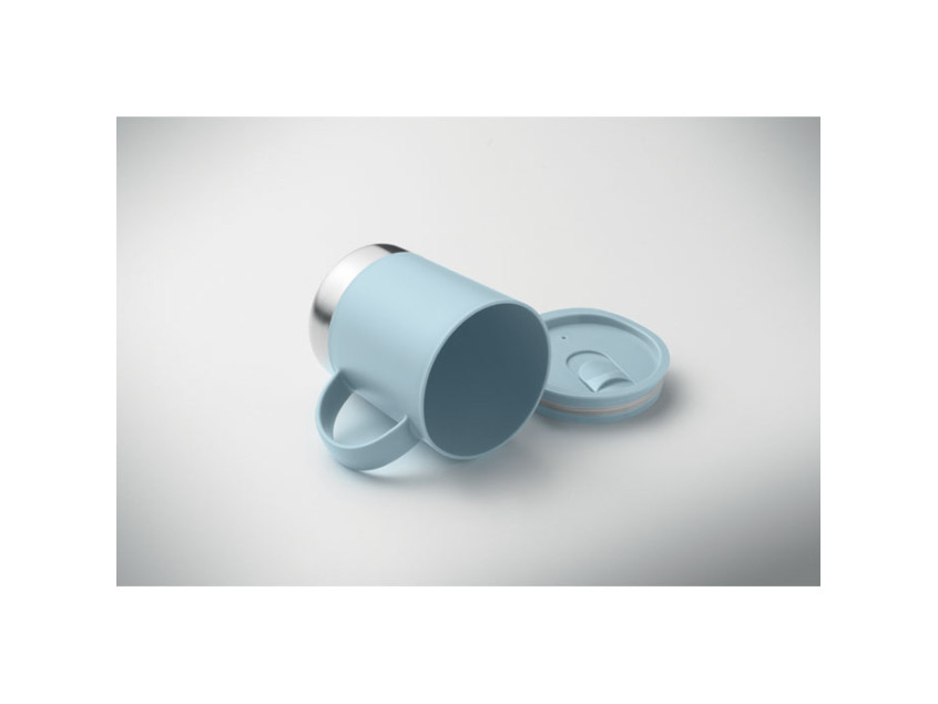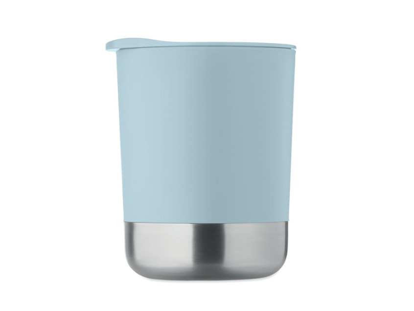 Кружка из полипропилена с основанием из 90% переработанной нержавеющей стали и 10% нержавеющей стали, с крышкой-слайдером. Объём: 300 мл.