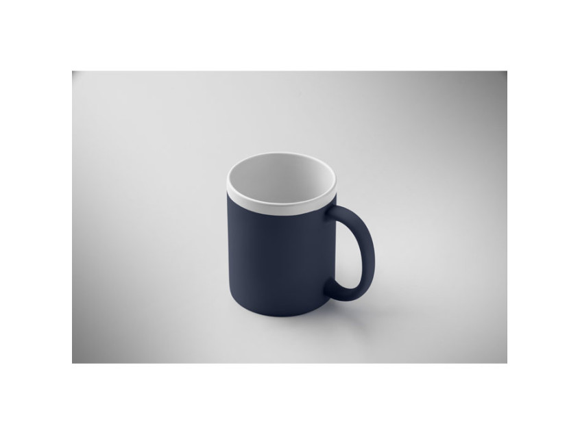 Керамическая кружка с матовой поверхностью и белой внутренней частью с ободком. Объем 300 мл. Подходит для гравировки. Индивидуальная упаковка в белую картонную коробку.