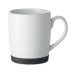 Керамическая кружка с белой матовой поверхностью и силиконовым нескользящим основанием. Объем 300 мл. Индивидуальная упаковка в белую картонную коробку.