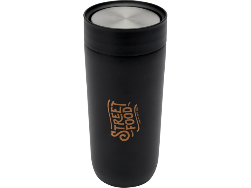 Премиальная кружка для питья находу с удобным механизмом открывания из нержавеющей стали, позволяющим открывать его одной рукой. Корпус из нержавеющей стали, сертифицированной согласно RCS, с прочным порошковым покрытием. Крышка изготовлена из сертифицированной согласно RCS нержавеющей стали и пластика РР. Медное покрытие и керамическое внутреннее покрытие. Подходит для большинства стандартных автомобильных подстаканников. Сохраняет напитки горячими в течение 12 часов или холодными в течение 24 часов. Поставляется в подарочной коробке из переработанного картона. Объем: 350 мл. RCS certified recycled stainless steel. упаковка FSC Mix Credit P5.1 CU-COC-877277.