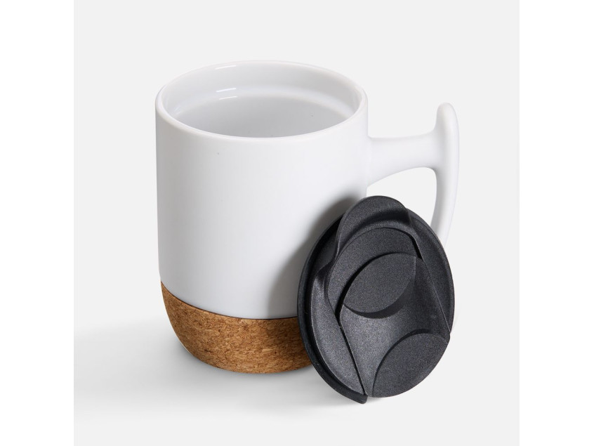 Эта кружка — стильное сочетание функциональности и дизайна. Корпус из керамики сохраняет напиток теплым, нижняя часть из пробки защищает поверхность от нагрева и скольжения, а пластиковая крышка предотвращает проливание. Эргономичная ручка делает использование особенно удобным.