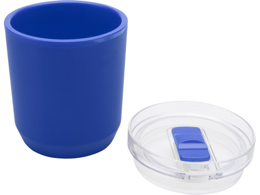 Кружка с простым дизайном, подходящая для большинства кофемашин и автомобильных подстаканников. Имеет двойную конструкцию из переработанного пластика PP снаружи и пластика PP внутри. Раздвижная крышка изготовлена из пластика AS и PP. Объем: 180 мл. Recycled Plastic.