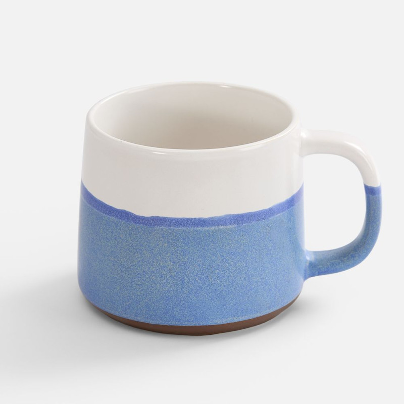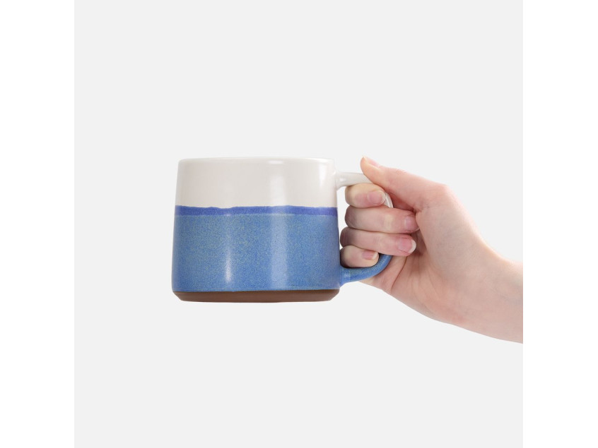 Нижняя половина кружки покрыта реактивной глазурью — особым видом керамического покрытия, компоненты которого вступают в химическую реакцию во время обжига при температуре 1200°C и выше. Из-за непредсказуемого взаимодействия компонентов создаются уникальные переливы, узоры и текстуры, поэтому в партии невозможно найти два абсолютно одинаковых изделия.Емкость 520 мл.