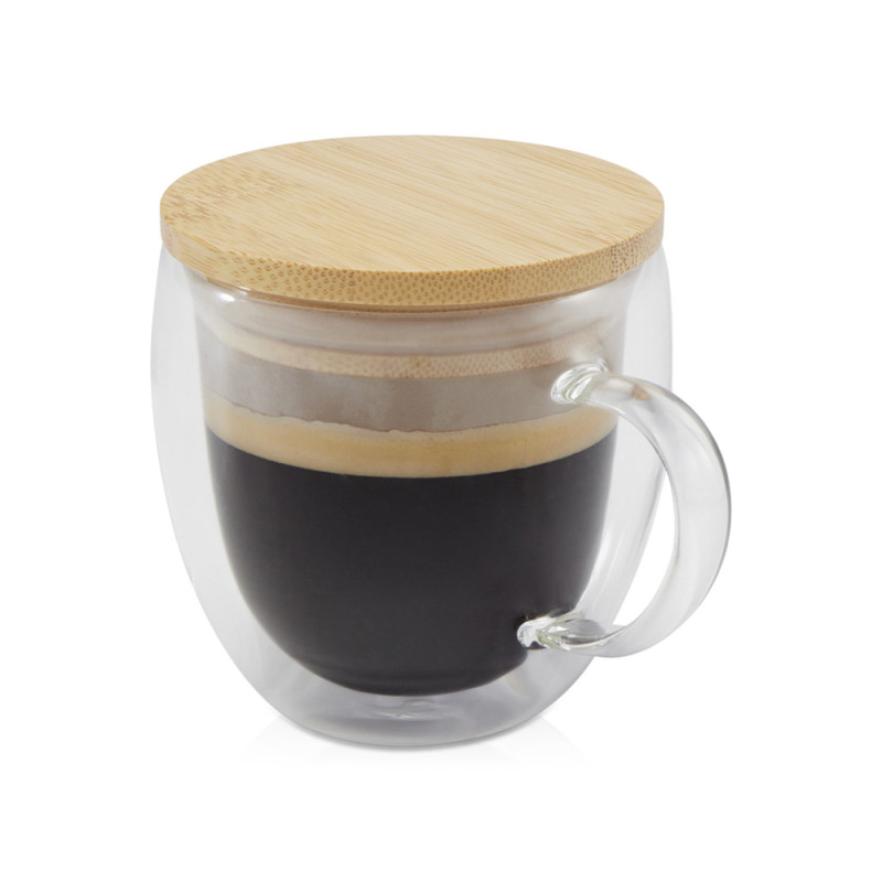Стеклянная кружка Lenora объёмом 250 мл с двойными стенками и стильной бамбуковой крышкой. Она дольше сохраняет температуру напитка, помогает избежать проливов и бережно удерживает его аромат. Идеальный выбор для уютного чаепития или кофе-паузы.