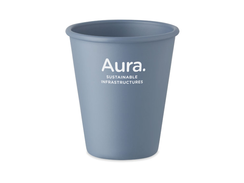 Reusable single wall cup in PLA corn. Capacity: 200ml. As this is a single walled mug, heat transfer can still occur.