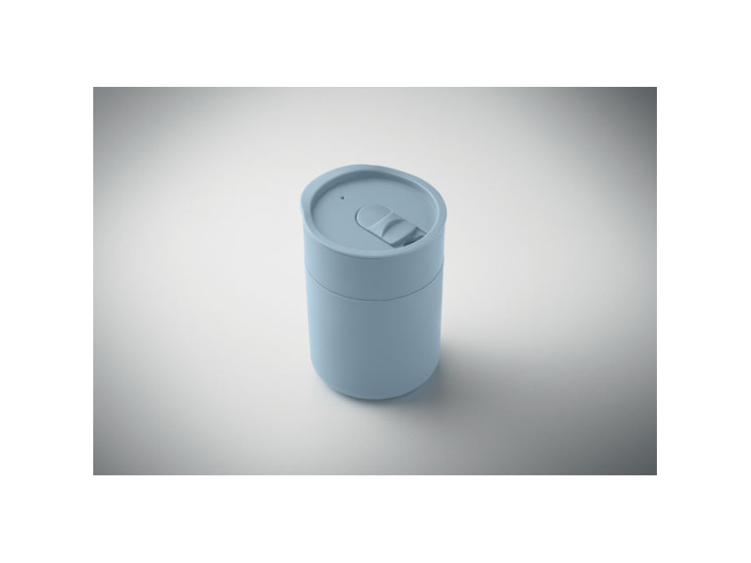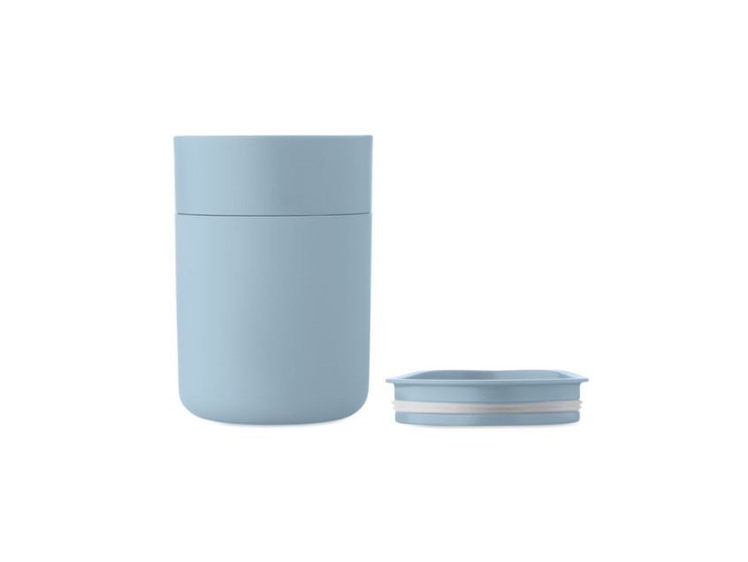 Стакан из полипропилена с силиконовым чехлом и крышкой-слайдером. Объём: 330 мл. Поскольку это кружка с одинарными стенками, возможно их нагревание.