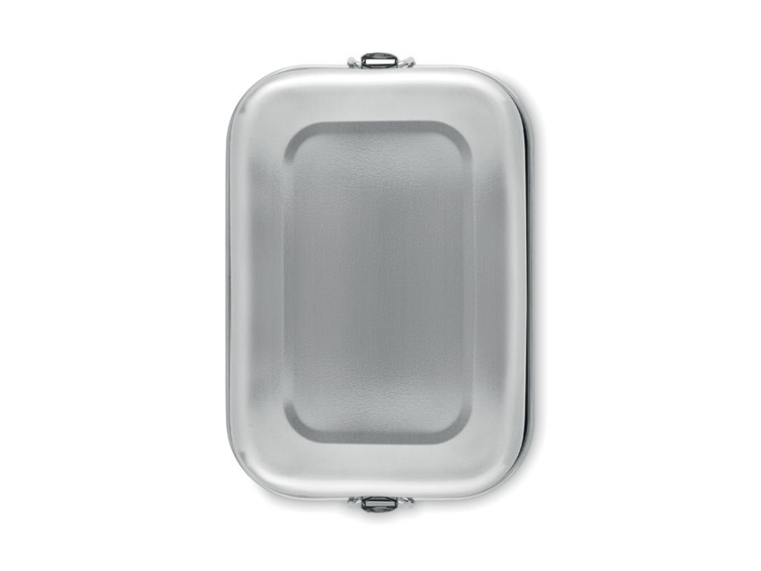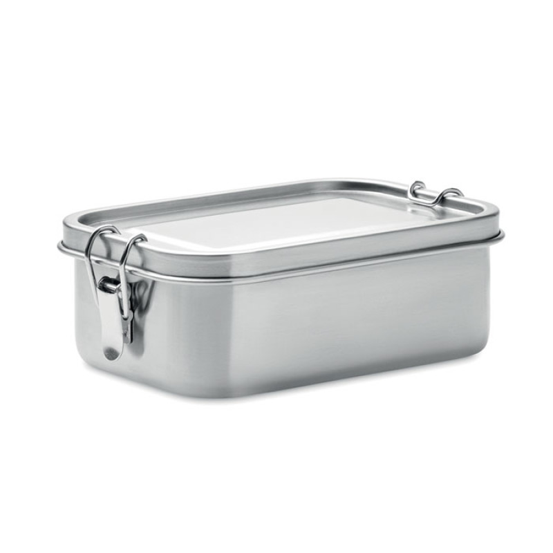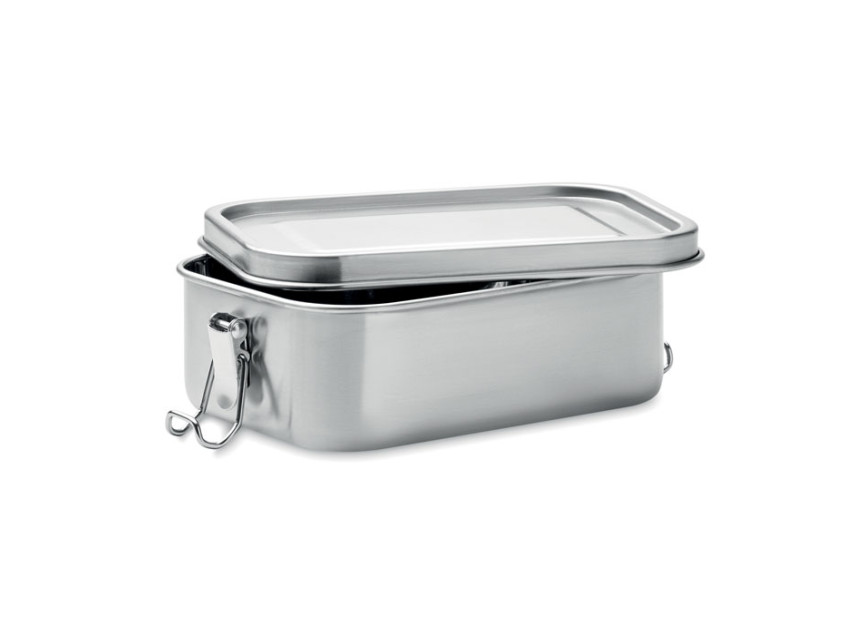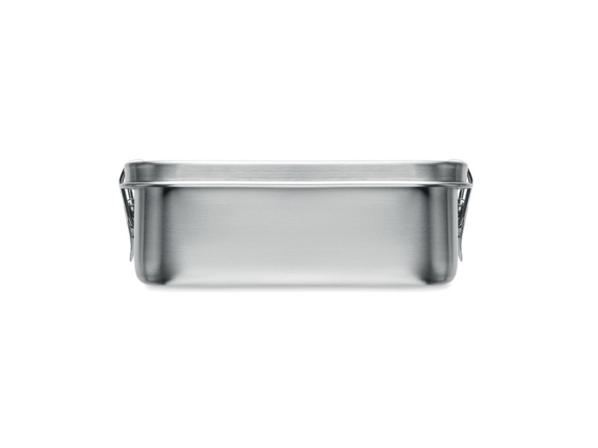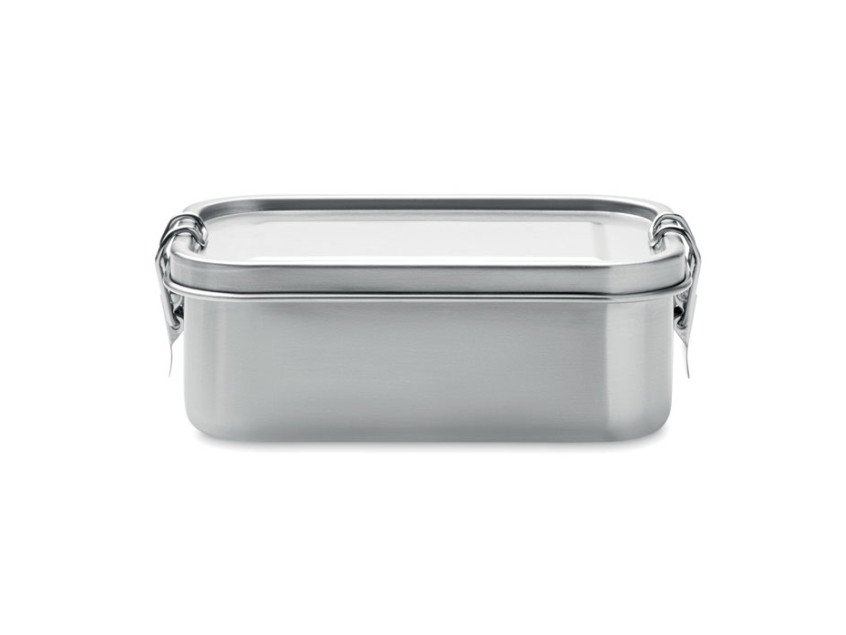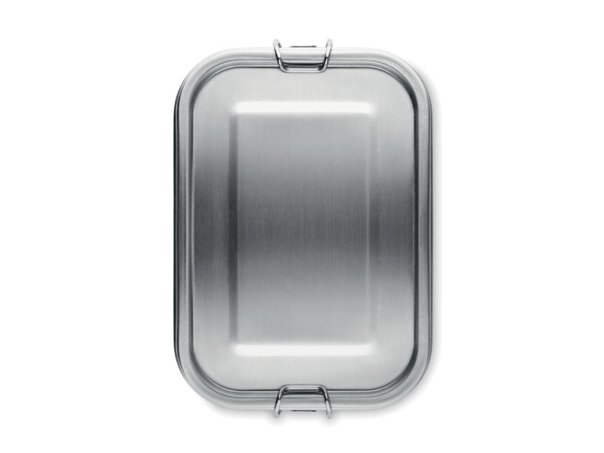 Ланчбокс из переработанной нержавеющей стали 90% и 10% нержавеющей стали с надежными боковыми застежками и скругленными углами. Объем: 750 мл.