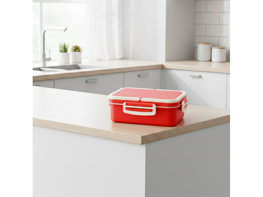 Контейнер для еды Inar — отличный выбор для безопасного и удобного хранения пищи. Его можно брать с собой на работу, в офис, учебу или любые другие места. Удобные отделения под разные блюда и комплект столовых приборов (вилка и ложка) делают его универсальным. Подходит для завтрака, обеда, ужина, поездок, пикников, путешествий. Материалы гипоаллергенные и безопасные. Можно разогревать пищу в микроволновой печи (до 80 градусов). Дополнительные боковые защёлки обеспечивают надежную фиксацию. Такой стильный контейнер станет отличным подарком для близких! Цвет по PANTONE® (максимально приближен): 186С.