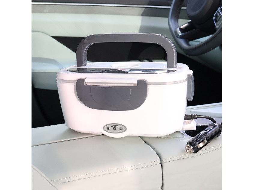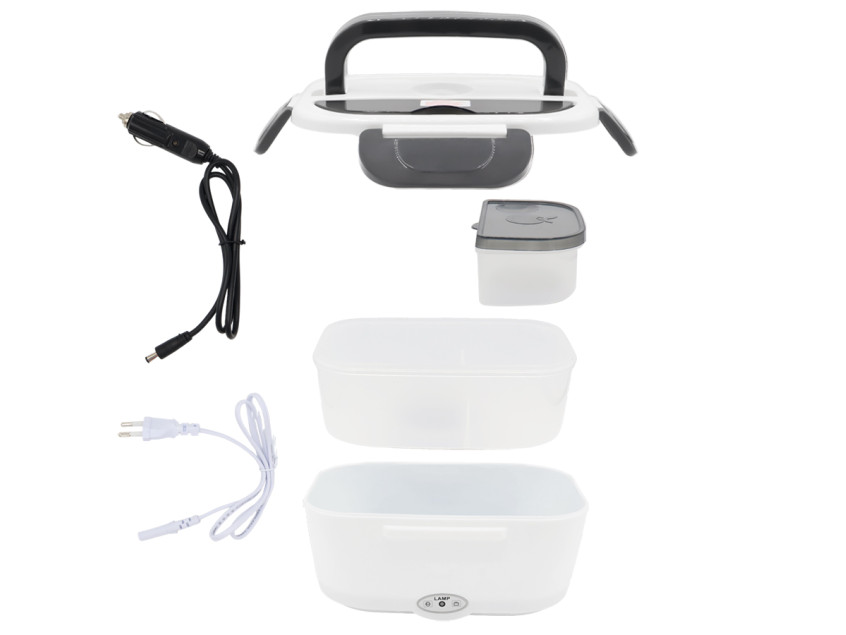 Объём 1500 мл. Два съемных контейнера на 1050 и 450 мл., ложка в комплекте. Мощность подогревателя — 40 Вт. Универсальность ланчбокса заключается в возможности подключения к подогреву как к сети 220 В, так и к автомобильной розетке 12 В/24 В.