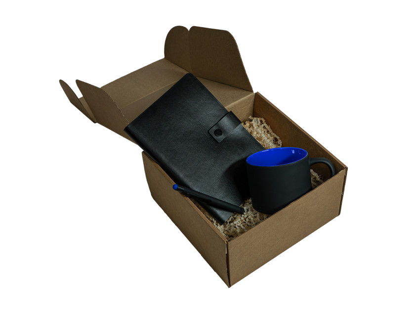 Набор подарочный DYNAMIC: кружка, ежедневник, ручка, стружка, коробка, черный/синий, Черный