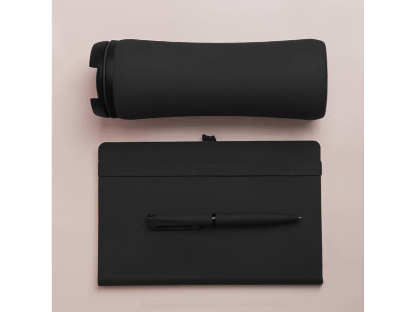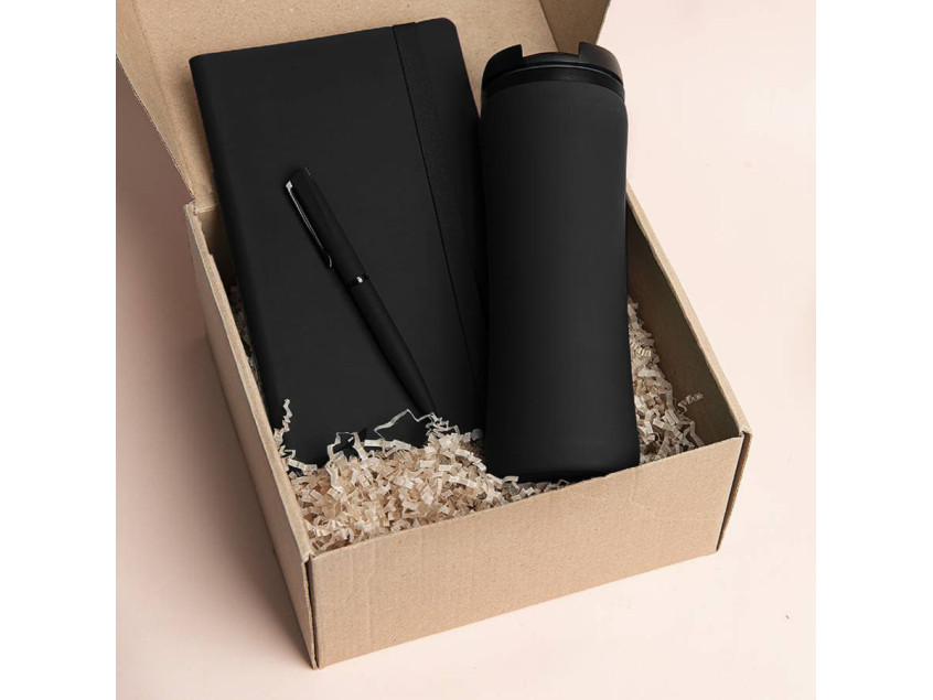 Набор подарочный OFFICEKIT: термос, ежедневник, ручка, стружка, коробка, черный, Черный