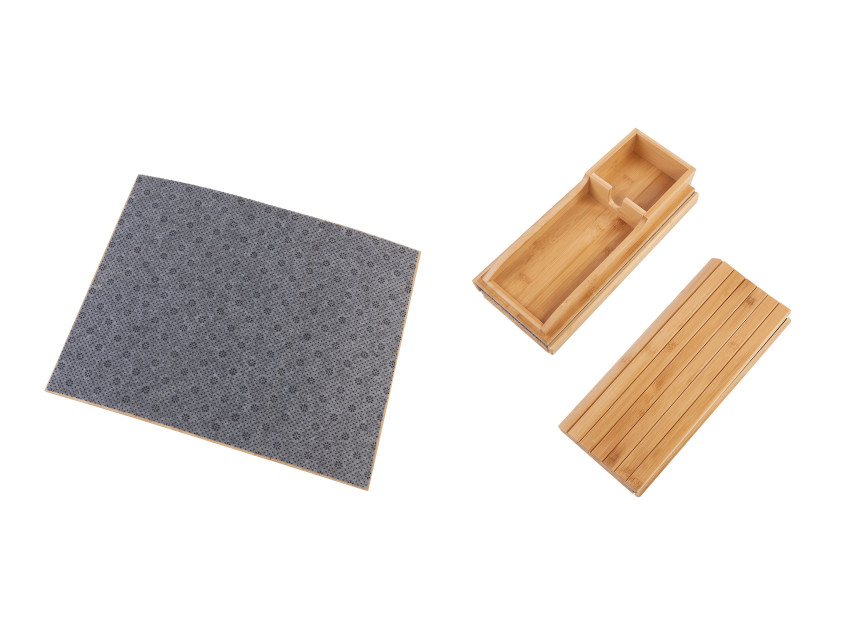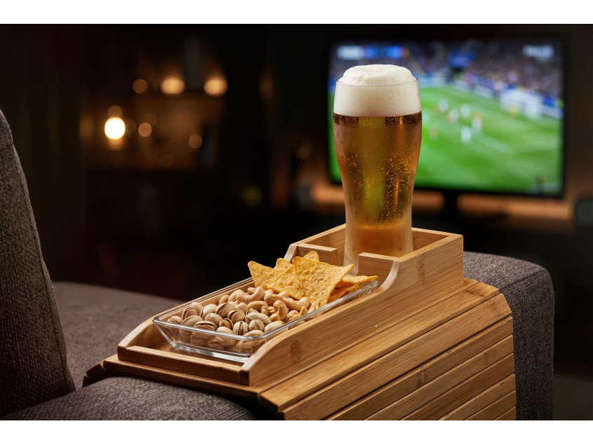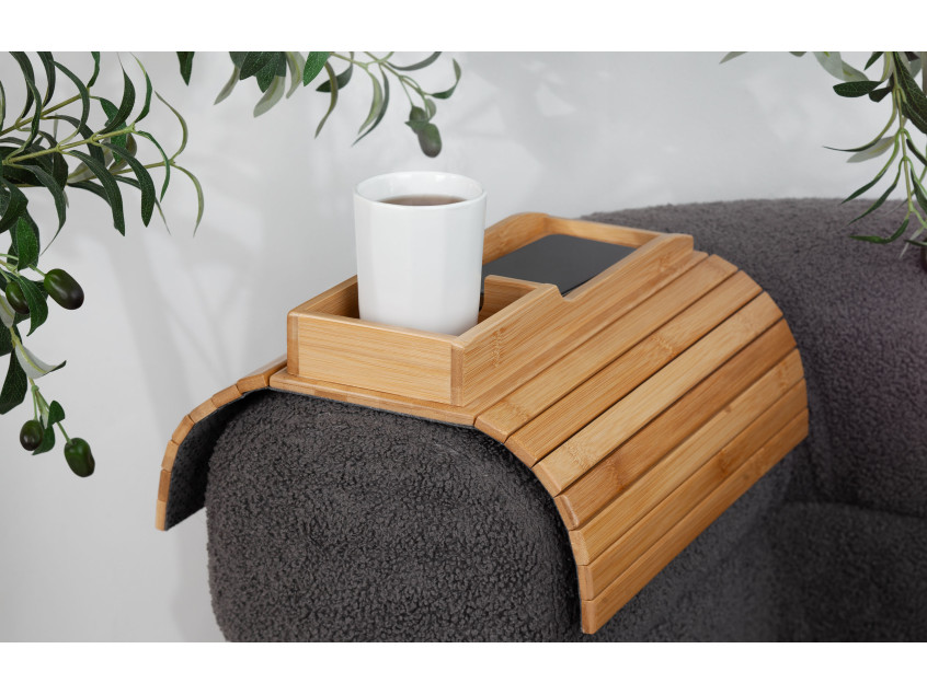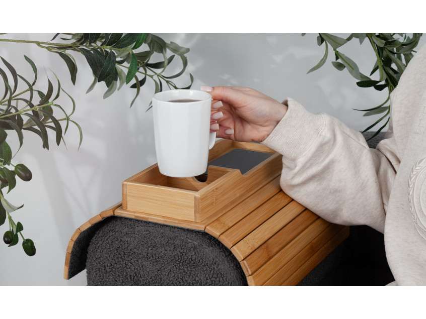 Благодаря реечной конструкции, органайзер можно легко разместить на кресле или диване. Нескользящее основание обеспечивает дополнительную фиксацию на различных поверхностях. Бамбук хорошо смотрится в любом интерьере. "Tray" идеально подходит как для дома, так и для офиса.
