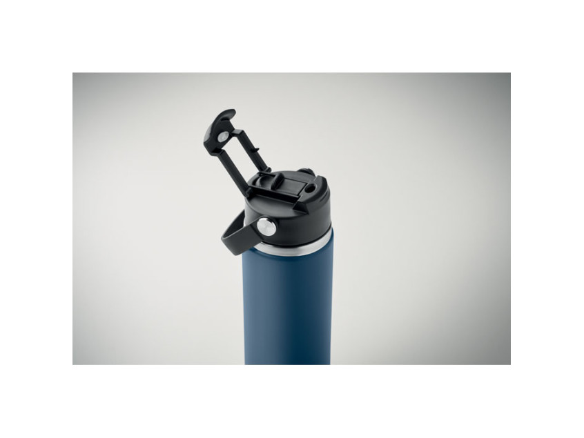 Термос с двойными стенками из переработанной нержавеющей стали 90% и 10% нержавеющей стали с трубочкой и крышкой с ручкой. Герметичный. Объем: 500 мл.